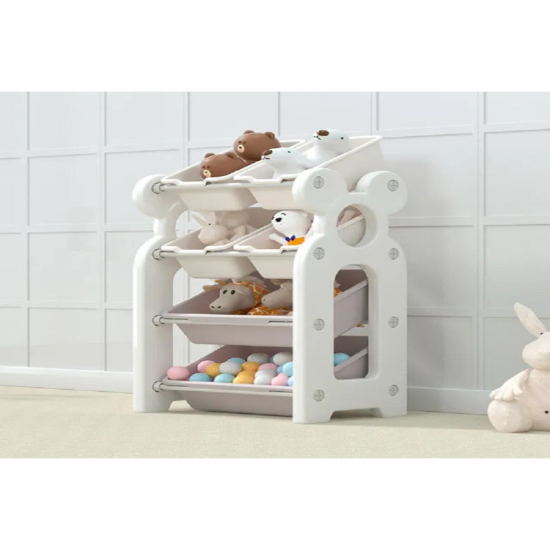 رف تخزين للأطفال مع 6 صناديق 4 طبقات - أبيض